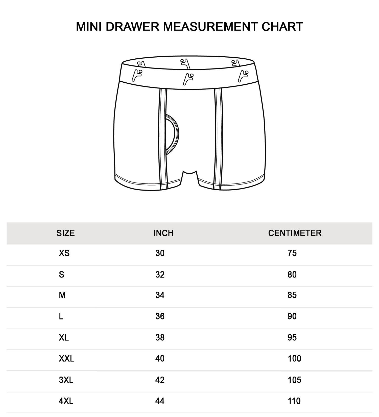 3XL -105 CM, 4XL-110 CM, L-90 CM, M-85 CM, S-80 CM, XL-95 CM, XS-75 CM, XXL-100 CM