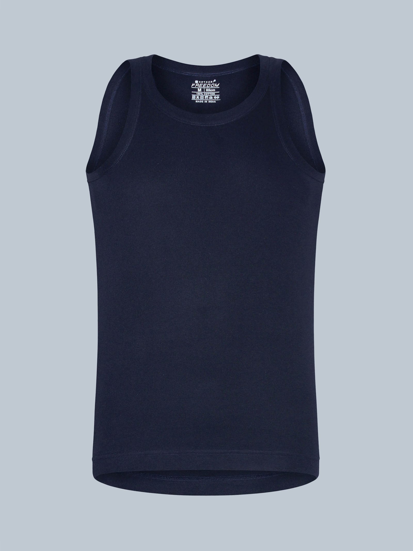 Designed with a regular fit, it sits comfortably on the body without feeling tight, while the ribbed texture ensures durability and long-lasting shape retention. The sweat-absorbing cotton fabric keeps you fresh even during long hours of wear. Finished with strong stitching and a neat round neck, this vest combines functionality with everyday style.
